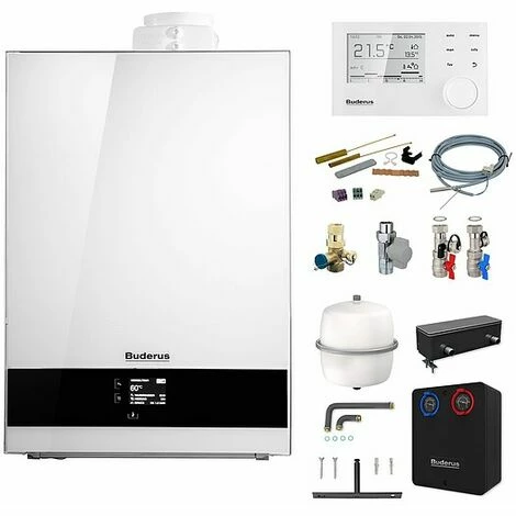 Das Gasbrennwert-Gerät lässt sich im Buderus System jederzeit erweitern, z. B. mit Pufferspeichern für regenerative Energien wie Sonnenkraft oder Festbrennstoffe wie Holz oder Pellets. Für die Ergänzung der Gasheizung um einen Warmwasserspeicher stehen je nach Warmwasserbedarf die Wasserspeicher Logalux S120, SU160/5, SU200/5 und SU300/5 zur Verfügung. Abgestimmte Bedieneinheiten sind die Systembedieneinheit Logamatic RC310 und die Bedieneinheit Logamatic RC200.
