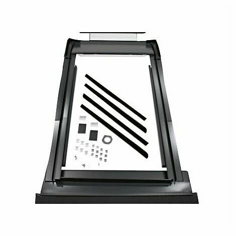 Eindeckbleche aus anthrazitfarbig beschichtetem Aluminium und Befestigungsmaterial für die Indachmontage eines einzelnen Kollektors