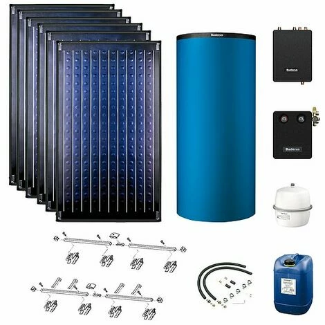 Buderus Solarpaket Logaplus S77 mit 6x Logasol SKN4.0-s 14,22 m² zur Aufdachmontage, Pufferspeicher 932l blau, Frischwasserstation Logalux FS/2 und Solarmodul