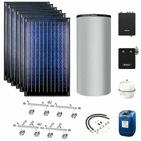 Buderus Solarpaket Logaplus S77 mit 6x Logasol SKN4.0-s 14,22 m² zur Aufdachmontage, Pufferspeicher 932l silber, Frischwasserstation Logalux FS/2 und Solarmodul