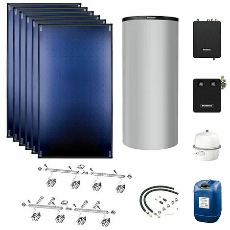 Buderus Solarpaket Logaplus S94 mit 6x Logasol SKT1.0-s 15,3 m² zur Aufdachmontage, Pufferspeicher PNR1000 932l silber, Frischwasserstation Logalux FS/2 und Logasol Solarstation
