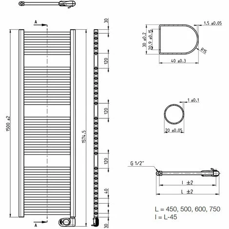 - Baubreite: 450 mm